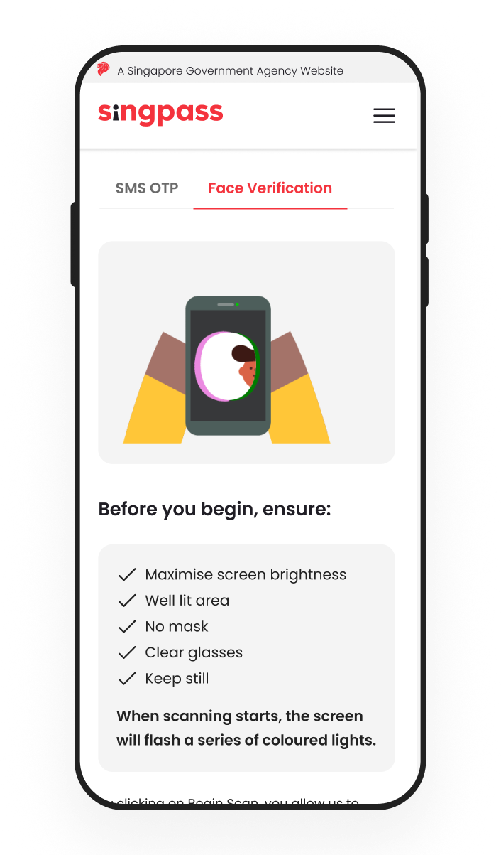 Visually impaired users struggled with Face Verification during Singpass app setup.